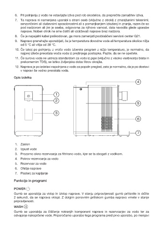 9. Napravo prenehajte uporabljati, če je temperatura dovodne vode ali temperatura okolice nižja